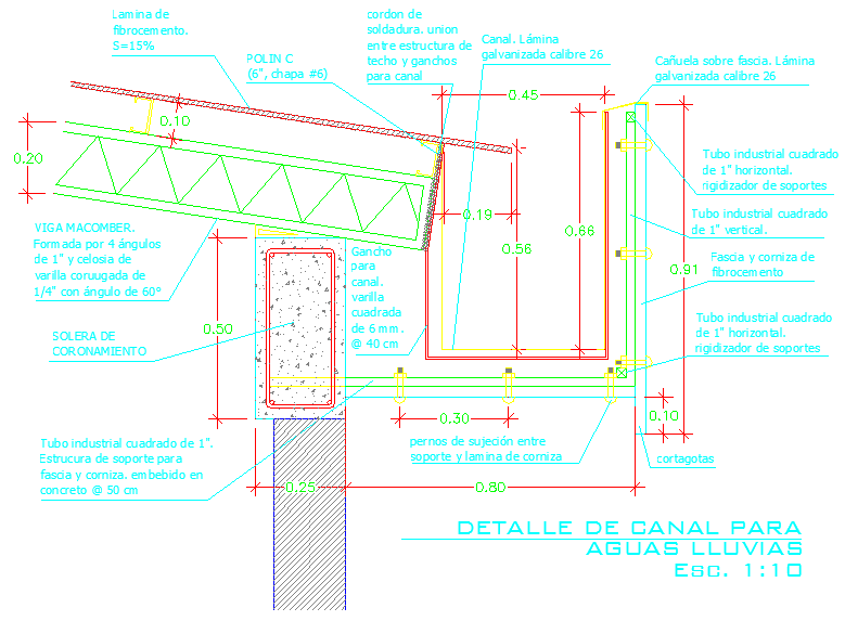 Here is an autocad dwg file for details of channel pluvial waters. there is an elevational plan with accurate detailing for better understanding.