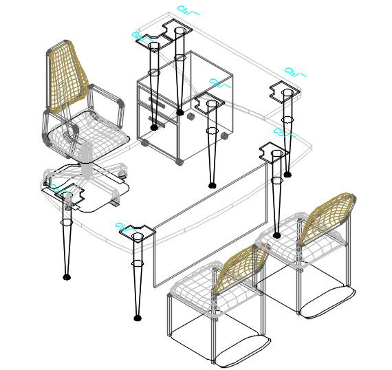 Here is the autocad dwg of management desktop,drawing consists of plan of furniture ,it includes table and chair,isometric view of furniture,3d view autocad file