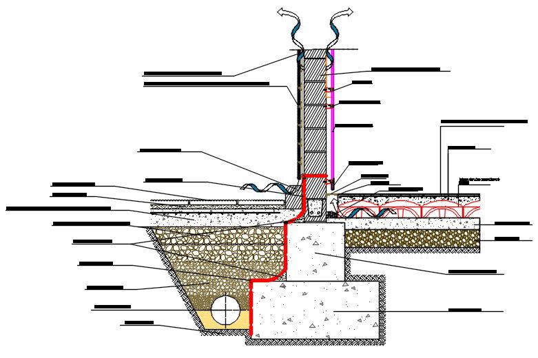 Here is the autocad dwg of ventilated front section,drawing consists of front section of ventilation,sectional detail of wall from foundation level,construction detail.
