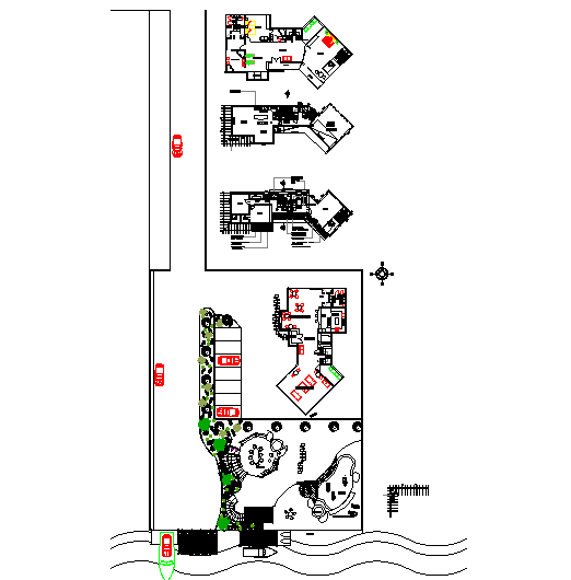 Here is an autocad dwg file for details of Club house area chanel with its presentation plan layout and its all side elevations with proper detailing.