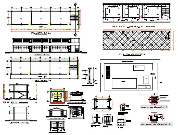 Here is the autocad dwg of classroom blocks,drawing consists of floor plan of classrooms,proposed layout plan,false ceiling layout,electrical plan,wiring layout,design elevation,front facade,side elevation.