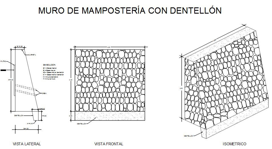 Here is the autocad dwg of masonry retaining wall,drawing consists of plan of retaining wall,elevation of wall,sectional detail elevation of retaining wall,isometric view of retaining wall.