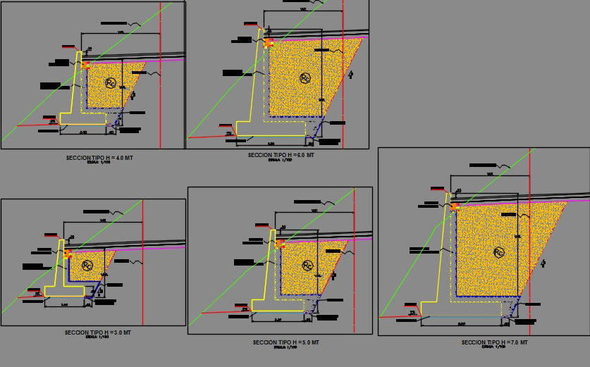 Here is the autocad dwg of steel reinforced retaining walls,civil plan of retaining wall,sectional elevation of wall,steel reinforced retaining wall,elevation of wall.