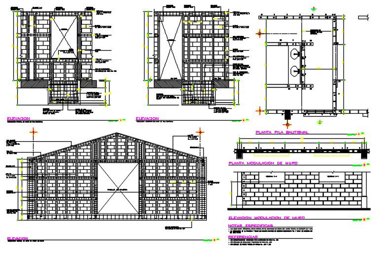 Here is the autocad dwg of modulation of walls detail,civil plan of wall,sectional elevation of walls,design elevation of brick wall detail,elevation of wall with door openings.