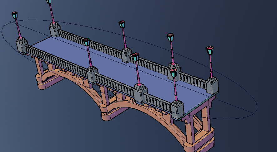 Here is an autocad dwg file for 3d view of a bridge . a structure carrying a road, path, railway, etc. across a river, road, or other obstacle.