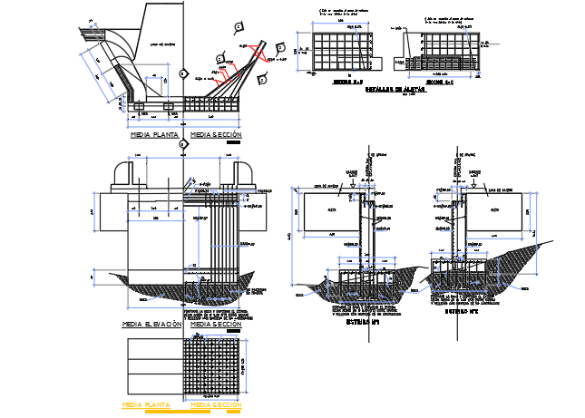 In this autocad dwg file there are details of the vehicular bridge . a structure carrying a road, path, railway, etc. across a river, road, or other obstacle.