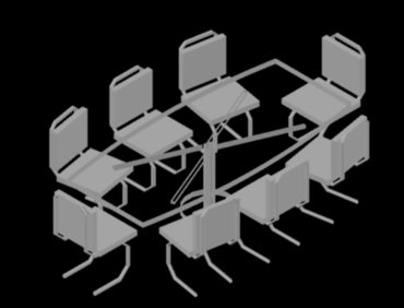 3D Dining Table DWG Layout with 8 Chairs for Interior Design
