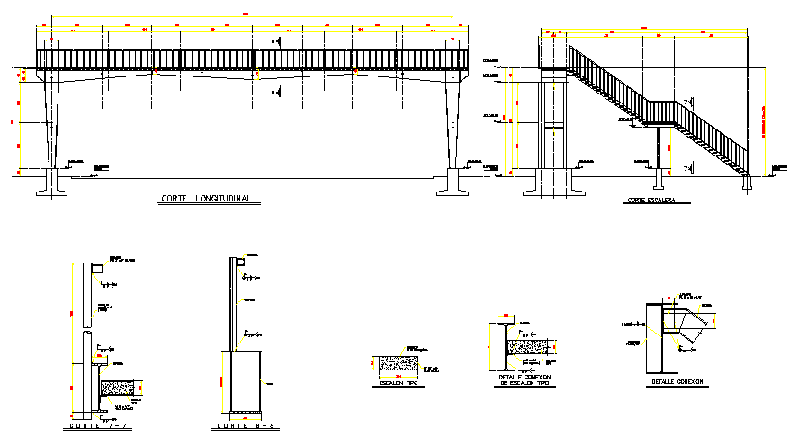 Here is the autocad dwg of peatonal bridge ,drawing consists of sectional elevation of bridge,staircases of bridge,sectional detail,plan of peatonal bridge.