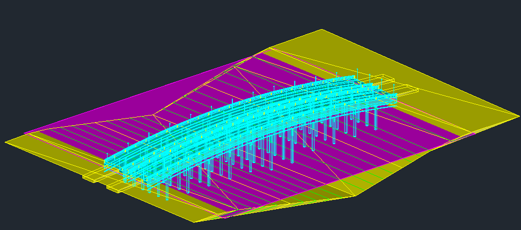Here is an autocad dwg file for 3d view of a bridge. a structure carrying a road, path, railway, etc. across a river, road, or other obstacle.