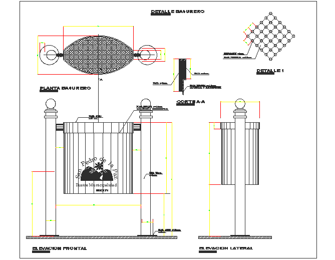 Here the detail drawing of garbage basket with plan, section, elevation, view and other details including dimensions and other description in autocad drawing.