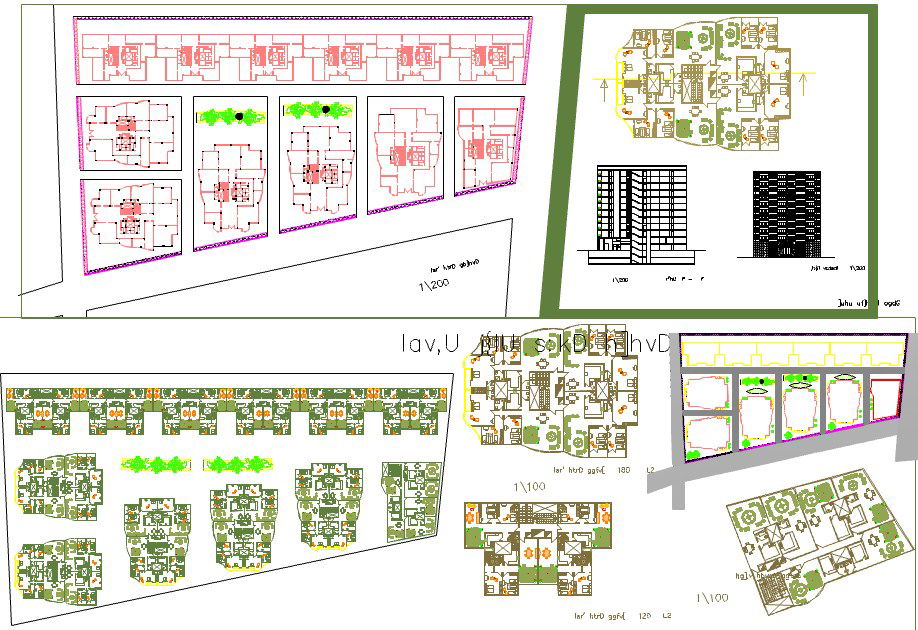 High Rise Apartment dwg file. The architecture layout plan of 2BHK and 3BHK, construction plan, section plan, elevation design, furniture detail also have roof plan.