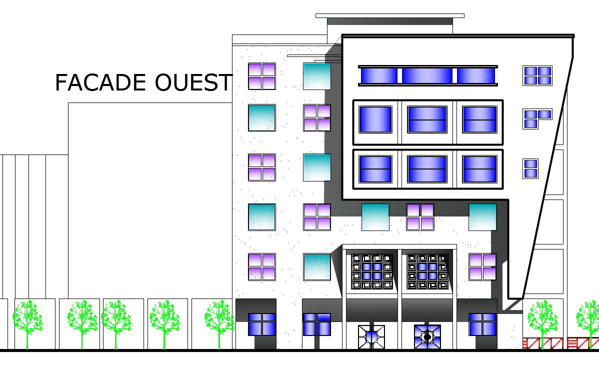 Building Elevation dwg file. The architect Elevation design of the building project.