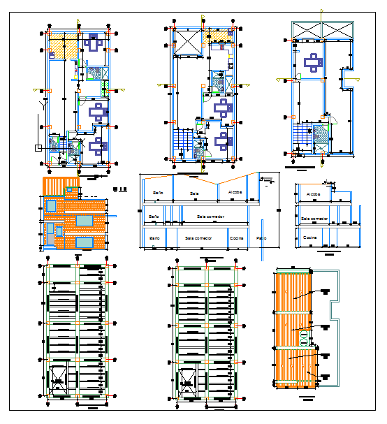 Home Plan dwg file. Find here floor plan, construction plan, section plan and elevation design of home project.