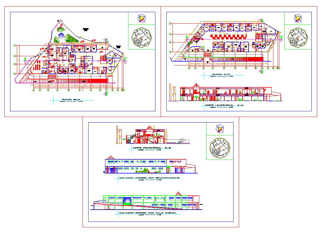 Health Center dwg file. The architecture layout plan, section plan, construction plan, furniture plan and elevation design.