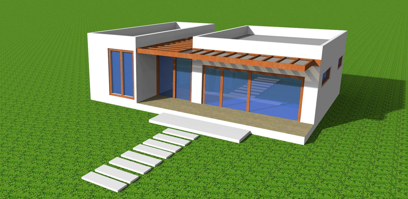 small house design with modern style. Here the 3D model of small housing showing the side view of all side of this house rendering, etc, in sketchup