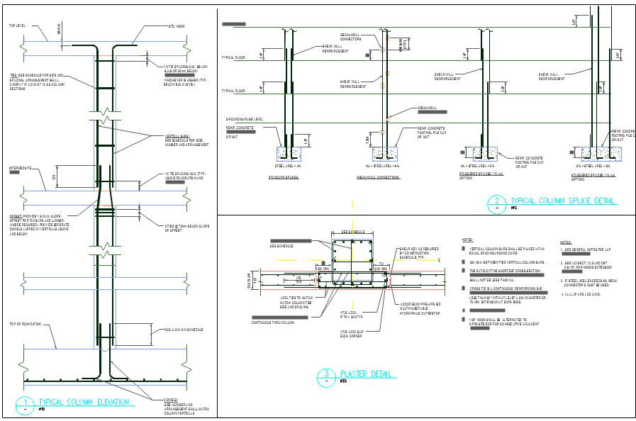 Column Details dwg file. Structural designs of column, footing along with section and elevation in 2d form.