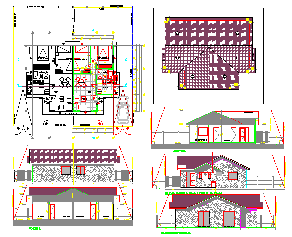 Twin House dwg file. layout plan of 2 BHK, roof plan, section plan, construction plan and elevation design of Twin House project.