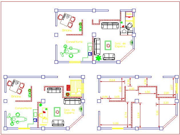 Clinic dwg file, includes clinic lab, machinery, waiting area, opd counter, lab, massage chair, sofa , tables., clinic layout plan