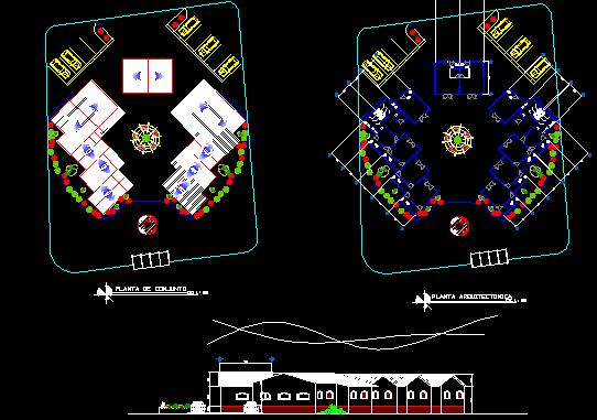 This Locales Commercials AutoCAD DWG file showcases a detailed architectural layout for a commercial building project. The drawing includes a comprehensive site plan, architectural plan, and elevation that reveal the full spatial arrangement and external façade composition. The design illustrates proper zoning for retail spaces, vehicle parking, and circulation areas, offering a realistic understanding of the overall commercial structure. Each unit and pathway is carefully designed, demonstrating accurate measurement, scale, and proportion ideal for planning and presentation.