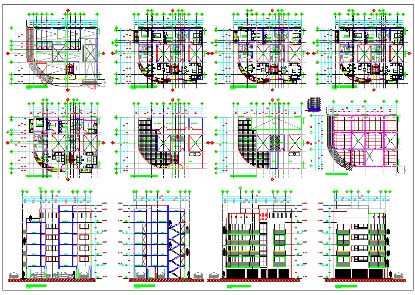 Apartment dwg file. Layout plan, structure plan, section plan all floor layout along furniture detail and also have detailing of foundation plan and elevation design.