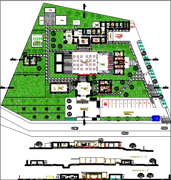 Restaurant dwg file , complete layout plan , hotel plan, dining arrangement, landscaping, top view etc