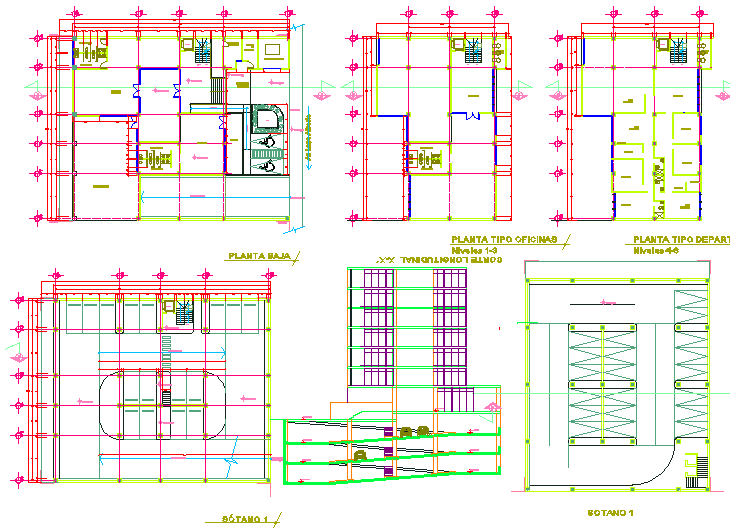 Mixed Use dwg file. Layout plan, car parking, section plan and structure detailing of this project.