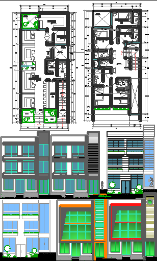 barand hotel dwg file, a big hotel design, complete layout plan, elevation details, glass building, furniture plan, spacing of the site etc