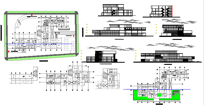 center for maternal and child health dwg file, bed arrangement of the clinic, elevation details of the clinic.views of all elevation, layout plan, big clinicn for women and child.