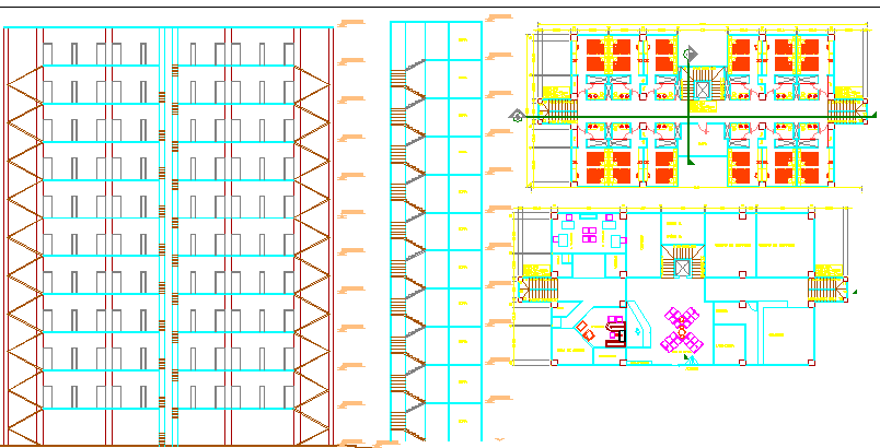 restaurant dwg file, posh restaurant, big hotel design , contains elevation of the hotel , layout plan of the restro with fullfilling seating, view of the hotel etc