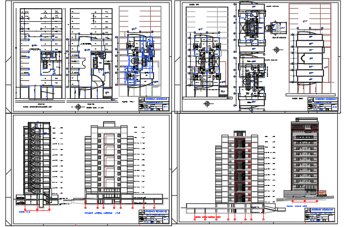 Here is the autocad dwg of multi family housing,civil plan of the building,furniture layout plan,elevations of the building,proposed layout plan,front and side elevation of the building.
