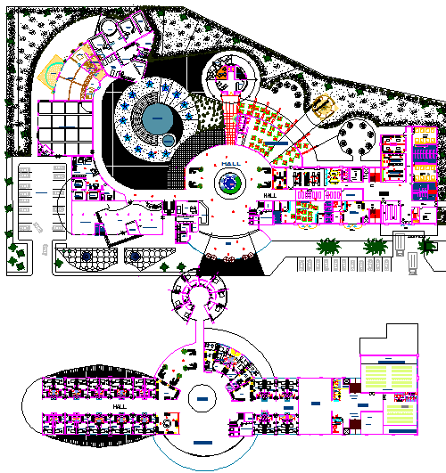 Four star hotel dwg file , highly luxurious hotel , great architecture detailing, a funfilled restro with beautiful view of the restaurant or hotel, contains seating plan, dinning plan, various spaces in the hotel, greenary,