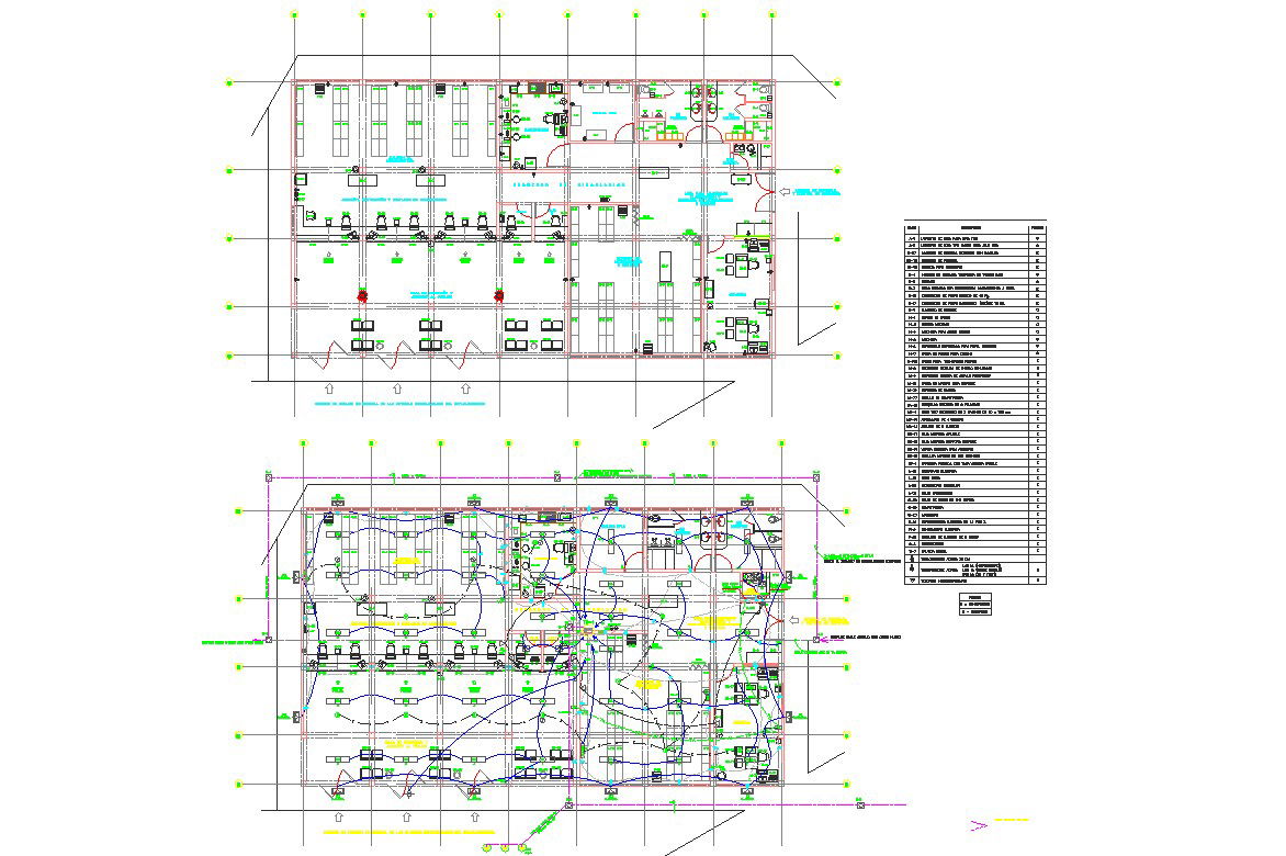 Hospital Hipolito dwg file. Layout plan electrical installation and furniture detailing of this project, constructed in lima.