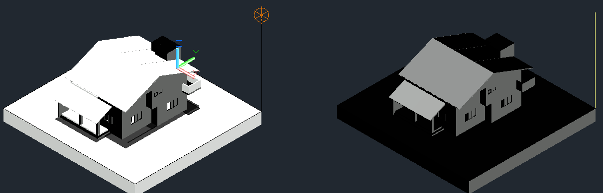 3D House design in DWG File. top view show in the drawing. a building for human habitation, especially one that consists of a ground floor and one or more upper storeys.