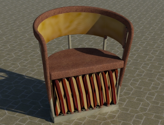 3D view of a Rustic mexican design chair in the autocad dwg file. chair is a seat for one person that has a back, usually four legs, and sometimes two arms.