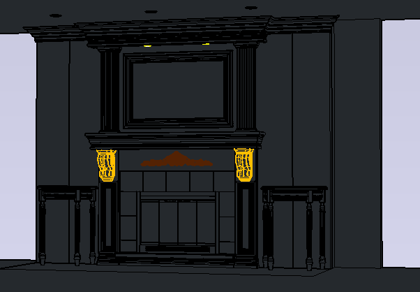 3D view of a Fire place wall in this autocad dwg file . download file