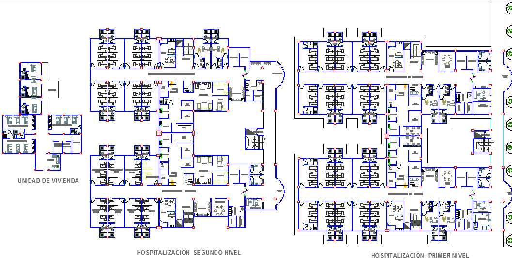 unit of hospitalization and medication dwg file, separate units of hospital and medical center, medical center consists of training centers for medical students and hospital unit consists of rooms, opd , testing centers etc there is a elevation of both the units