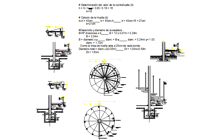 in this autocad dwg file Here is the description for the details of spire stairway with its plan and elevation detail. It is A top part or structure that tapers upward, such as a rock formation or steeple.