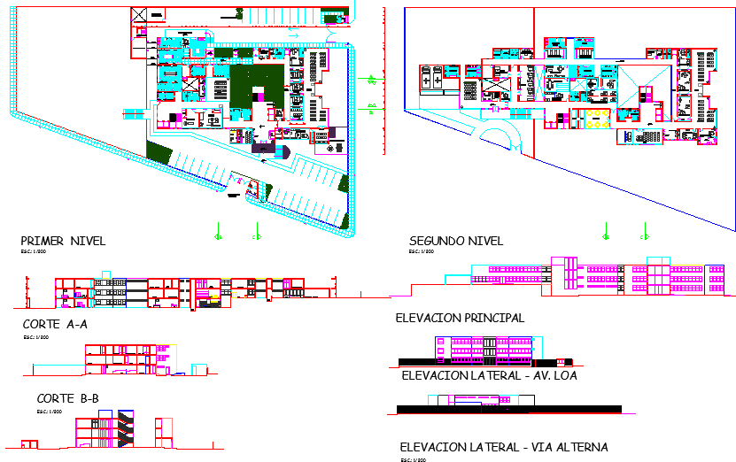 hospital center dwg file, this layout consists of complete hospital details, their sections, and their elevations, plan detailing, hospital structure