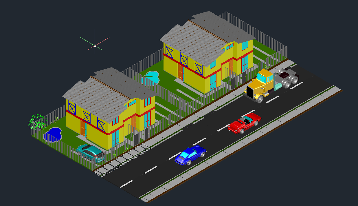 This autocad drawing shows a semi detached dwelling with its elevation.