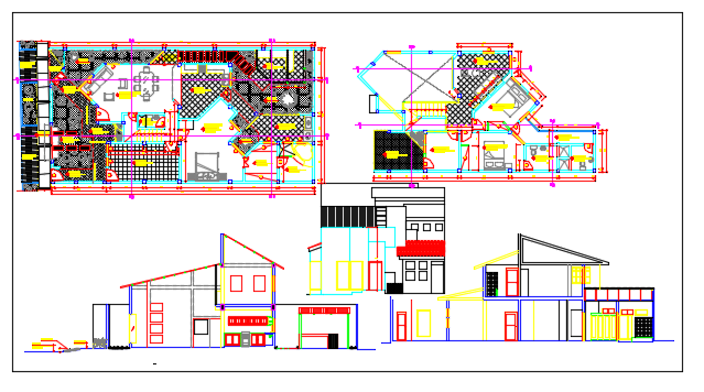 Single Family Home dwg file. Layout plan of two floor plan, section plan and elevation design of this project.