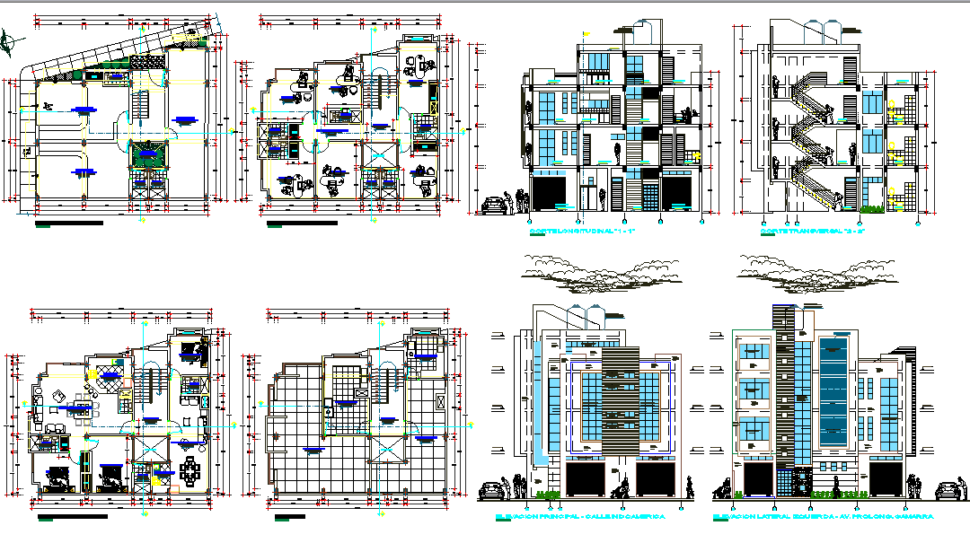 Three Floor House dwg file. The architecture layout plan include residence layout plan, office layout plan with furniture detail of Three Floor House project.