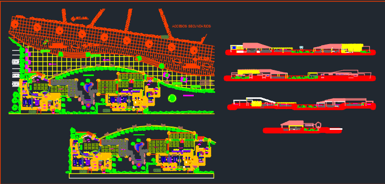 Gastronomic center dwg file, this a power plant layout , for maintaining and carrying out the waste of the products, it shows the smoke handling department, etc, elevation of the gastronomic center