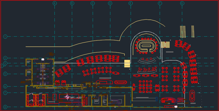 Beach restaurant dwg file, beach side view restro, with multiple seating arrangement, group tables, tables for couples, family tables and banquet, waiting area etc