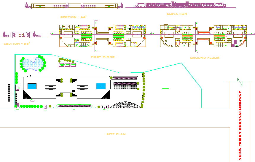 hospital 100 beds design dwg autocad file architecture drawing of plan and elevation details with hospital landscape design details