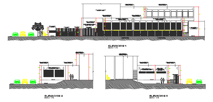 Here the detail drawing of primax offices building showing sections and elevations with dimensions, material description, hatch, space description and other detail in autocad drawing.