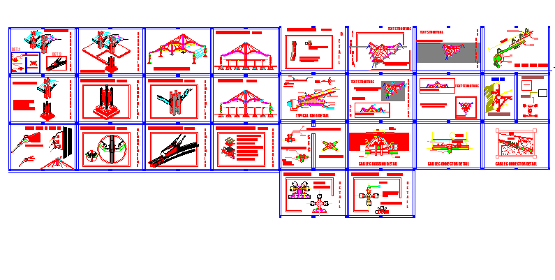 Here the autocad drawing of cable structure showing different 3D views, detailed sections with dimensions, material description and other required details.