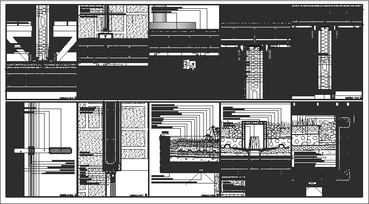 Here the detail drawing of cross section of different places showing details of materials, foundation with dimensions and other details in autocad drawing.