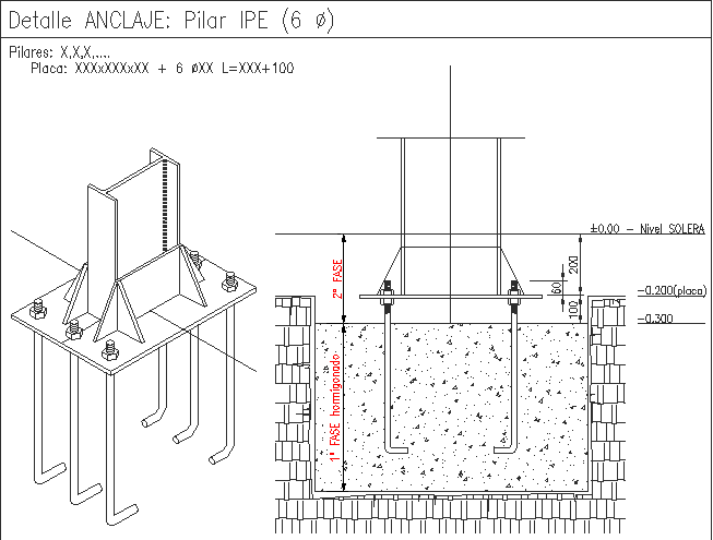 Here the autocad drawing of steel structure base anchor showing section and a 3D view with required detail like dimension, foundation detail, joinery detail, etc.