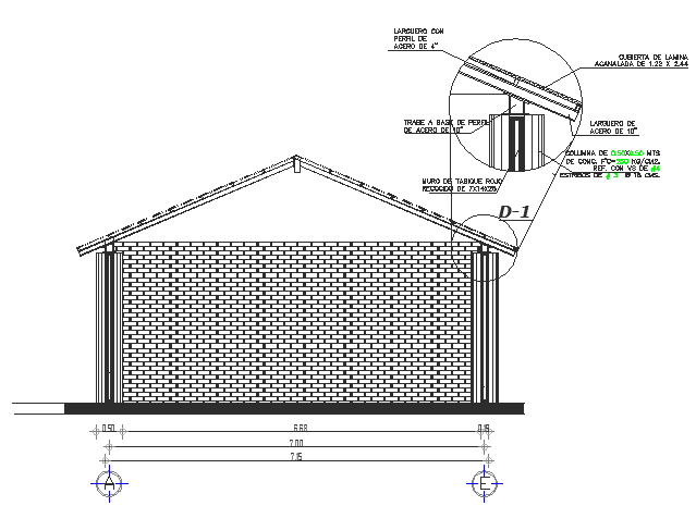 Here the autocad drawing of gabble roof showing dectional elevation with detailed view of joints including material description, dimensions, and other required data.
