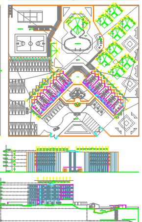 Hotel 3 star , grand and big luxurious hotel design, elevation, section and layout plan of 3 star hotel, rooms, dining, pool etc